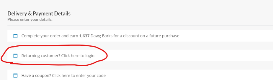 1. When on the CHECKOUT page, click on "Returning customer? Click here to login" and sign in.
