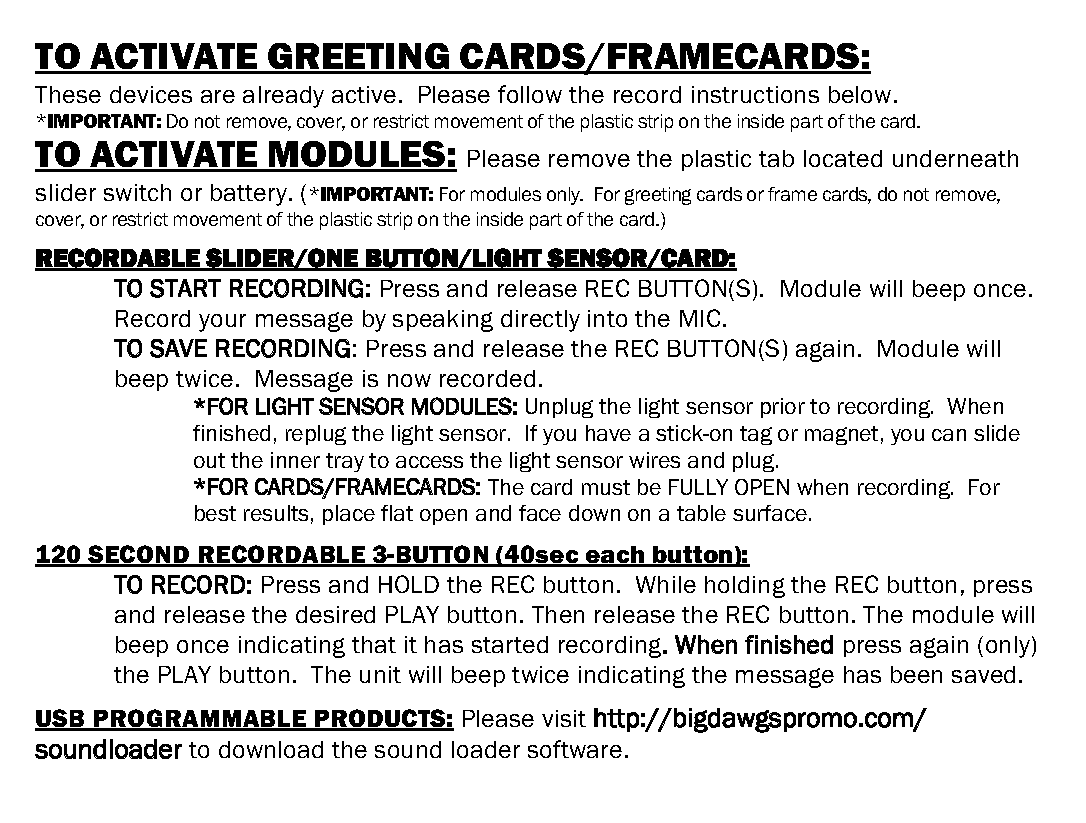 Errors: Write SPI flash Error... (Program freezes or hangs after the "write" button is clicked) Cause: Sampling Rate setting is set too high, or the sound file duration is too long. Remedy: Choose a lower sampling rate setting. Cut the sound file ...